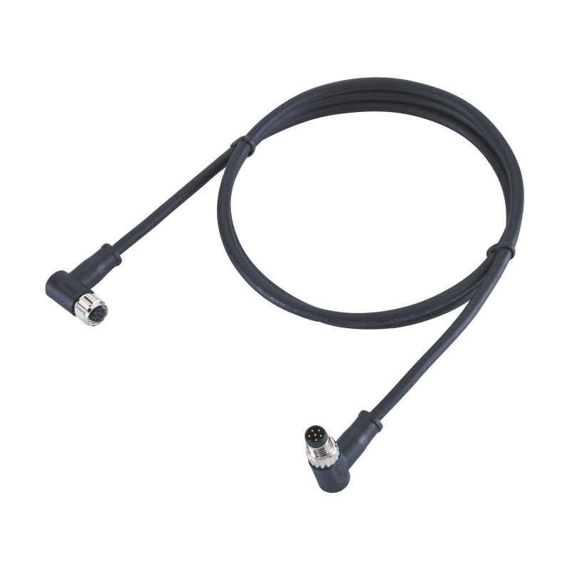 M8 6Pin male to female, right angled, molded 6x26AWG PVC cable